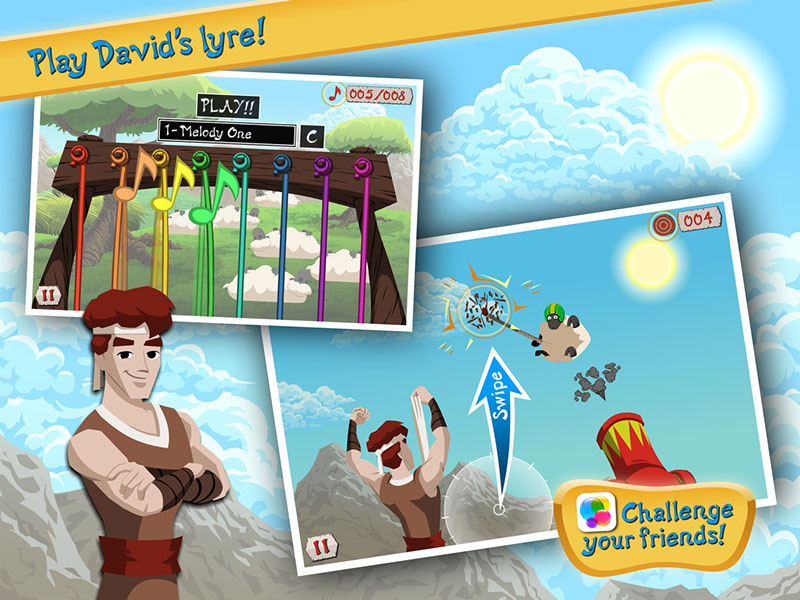 The epic story of David vs. Goliath from the Bible! Help David go from shepherd to hero with tons of slinging, lion fighting and lyre practice along the way! Can you get him ready to face Goliath?
